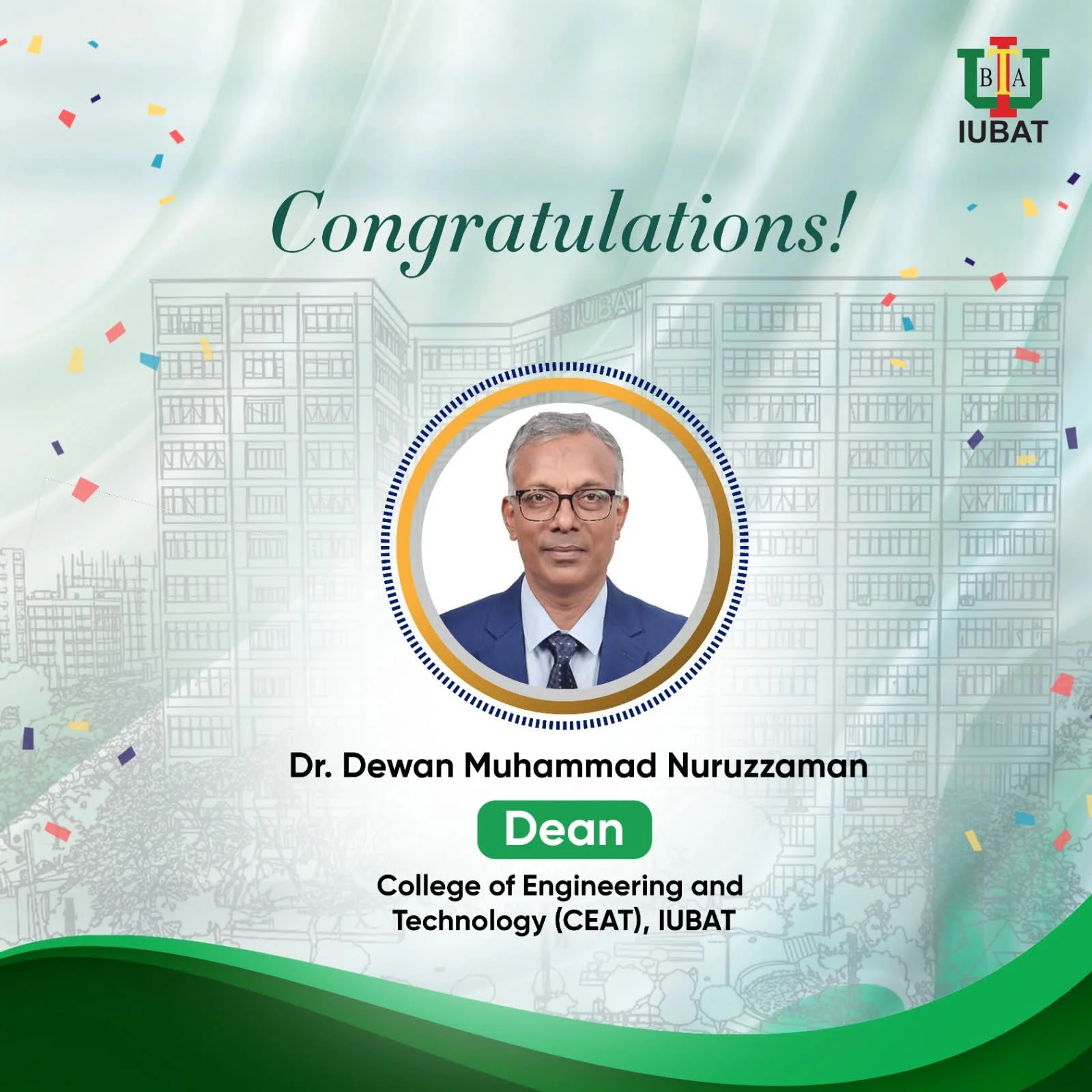 Heartiest congratulations and best wishes to Prof. Dr. Nuruzzaman Sir on his esteemed appointment as the Dean of the College of Engineering and Technology at IUBAT