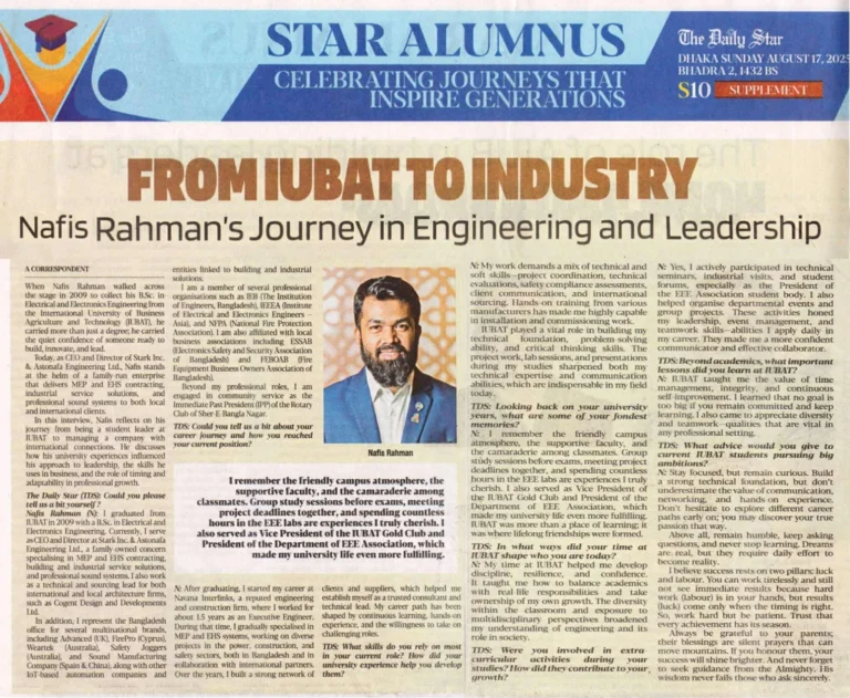 We are proud to share that our alumnus and President of IEEEAA - IUBAT EEE Alumni Association, Mr. Nafis Rahman, has been featured in T...